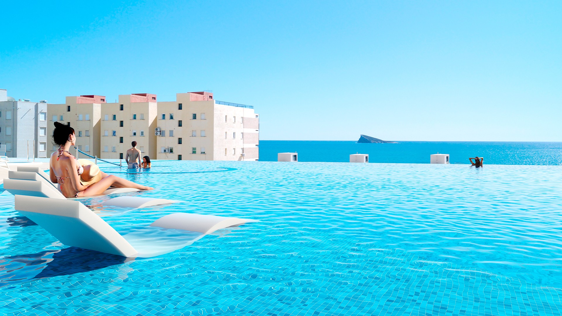 Nieuwbouwproject gelegen in een van de beste gebieden van het Poniente-strand, Benidorm, op slechts 100 meter van de zee. Dit luxe wooncomplex beschikt over twee torens, een van 30 verdiepingen en een van 40 verdiepingen, beide gericht op het zuiden om optimaal te profiteren van de panoramische uitzichten en natuurlijk licht. De bewoners kunnen genieten van een uitgebreide reeks voorzieningen, waaronder zwembaden (waarvan één verwarmd), jacuzzi’s, een chill-out ruimte, een panoramische sportschool en een bioscoopzaal. Bovendien beschikt het complex over een sportzone met padel-, tennis- en multisportvelden, een moderne coworkingruimte en gemeenschappelijk parkeren, waarmee alles geboden wordt voor een leven in een omgeving van ontspanning en welzijn. Op slechts een paar stappen van het strand geniet je van een onvergelijkbare levensstijl, met toegang tot de beste entertainmentopties, restaurants en winkels in Benidorm.