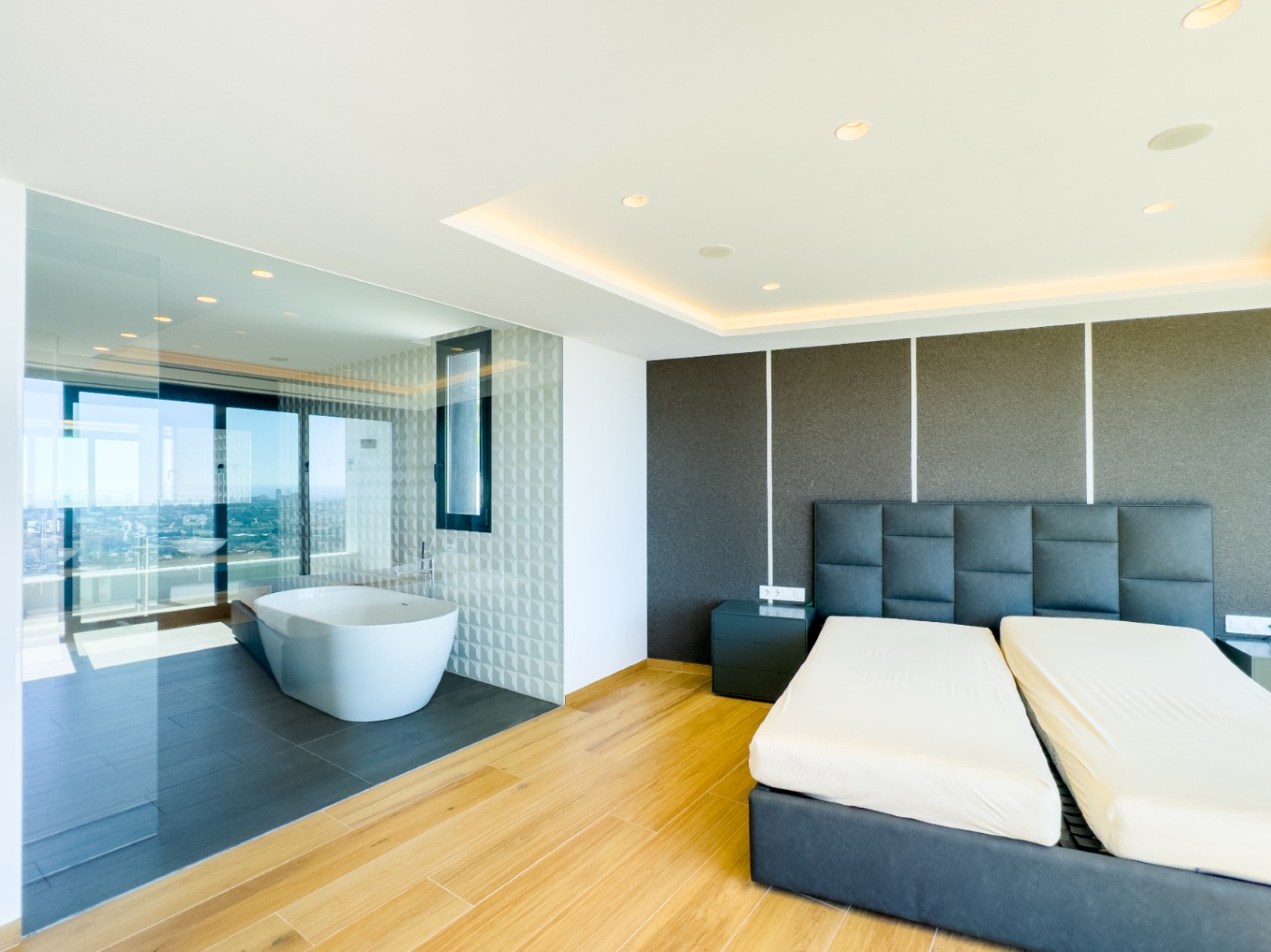 De villa zal worden voorzien van 4 slaapkamers*, allen met eigen badkamer en terras. Daarbij vindt men de hoofdslaapkamer met ensuite badkamer op de begane grond. De andere 3 slaapkamers vindt men op de 1ste etage evenals de bijbehorende badkamers.(*In de onderbouw van zo´n 90m, heeft men eventueel de mogelijkheid om nog meer slaapkamers en badkamers te creeëren)