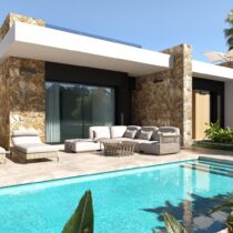 Modern comfort en uitzonderlijke functiesElk huis is gebouwd met materialen en afwerkingen van topkwaliteit:PVC ramen met dubbele beglazing en op afstand bedienbare gemotoriseerde rolluiken.Elektrische vloerverwarming in badkamers.Airconditioning met kanaalsysteem.Villa’s met privézwembaden (3,00 x 6,00 m) en roestvrijstalen douches.Gemeenschappelijke zwembaden met kindergedeelte voor bungalowbewoners.Als speciale lanceringsaanbieding zijn geselecteerde woningen inclusief witgoed en een meubelpakket.