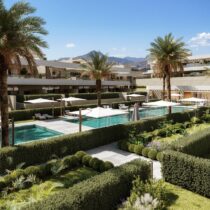 Dit wooncomplex geeft een nieuwe invulling aan het mediterrane leven door middel van zorgvuldig ontworpen gemeenschappelijke ruimtes die gericht zijn op ontspanning en welzijn. Aangelegde tuinen met fonteinen, waterpartijen en palmbomen creëren een serene oase-sfeer.