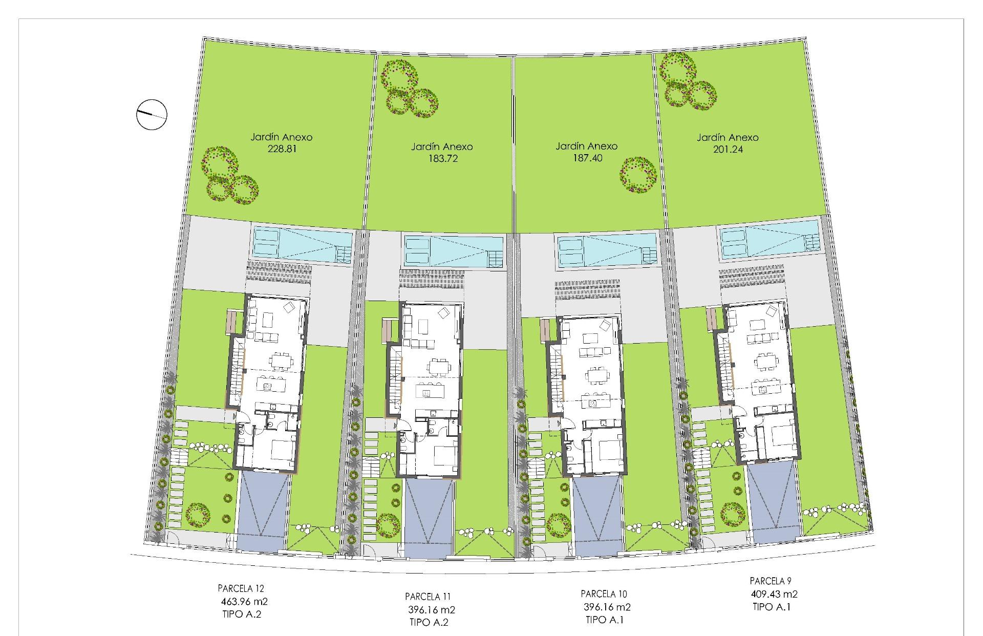 Alle villa’s hebben 3 slaapkamers, 2 of 3 badkamers, open keuken met salon, ingebouwde kasten, airconditioning en aerothermisch, ingerichte keuken, privé tuin met zwembad en parking.