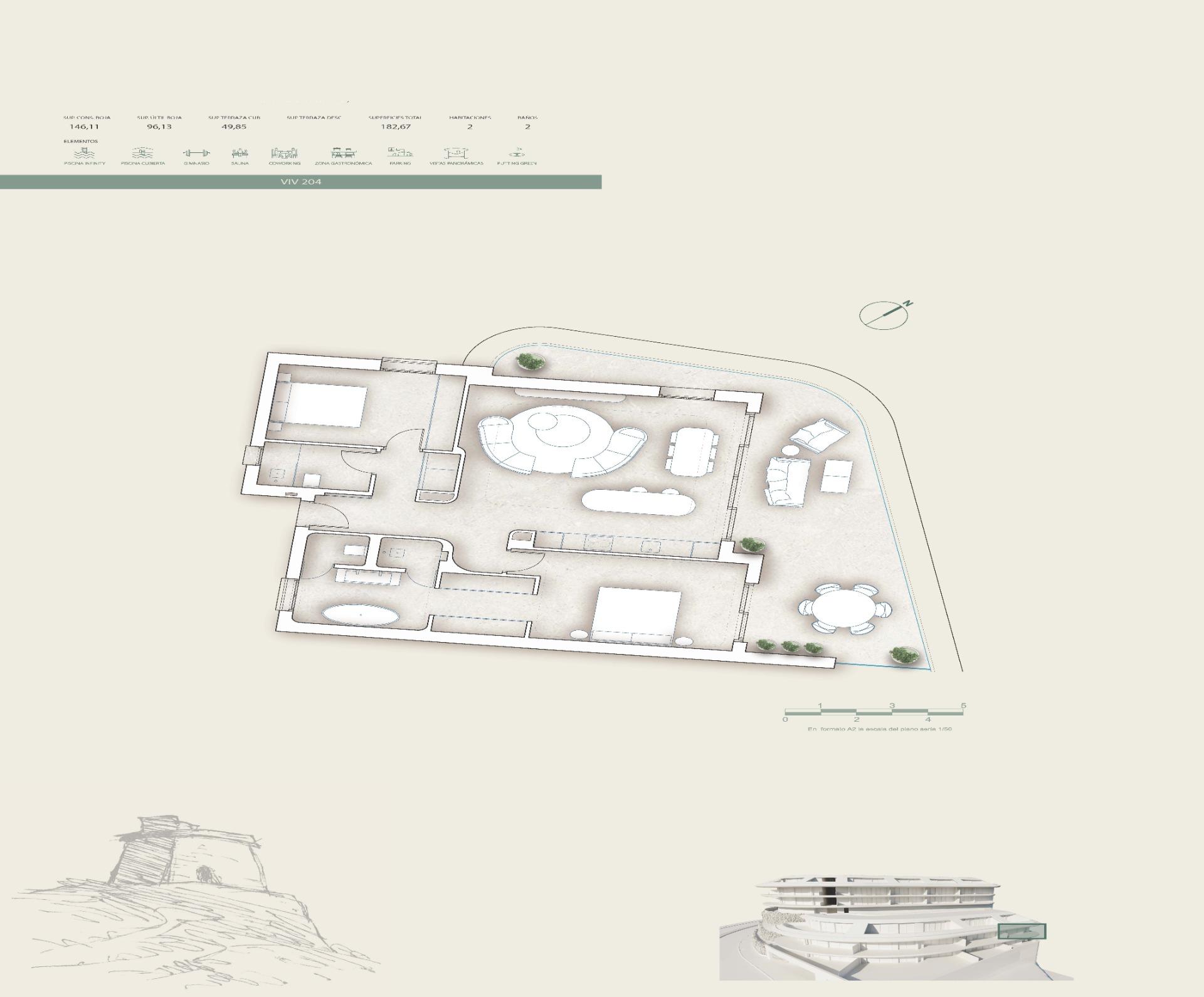 Elk appartement beschikt over 2 of 3 parkeerplaatsen en 1 berging. De woningen zijn afgewerkt met hoogwaardige materialen en luxe specificaties, zoals grootformaat vloer- en wandtegels, volledig ingerichte keukens met Miele-apparatuur, badkamers met wastafelmeubel, spiegel en doucheschermen, en volledig geïnstalleerde airconditioning.