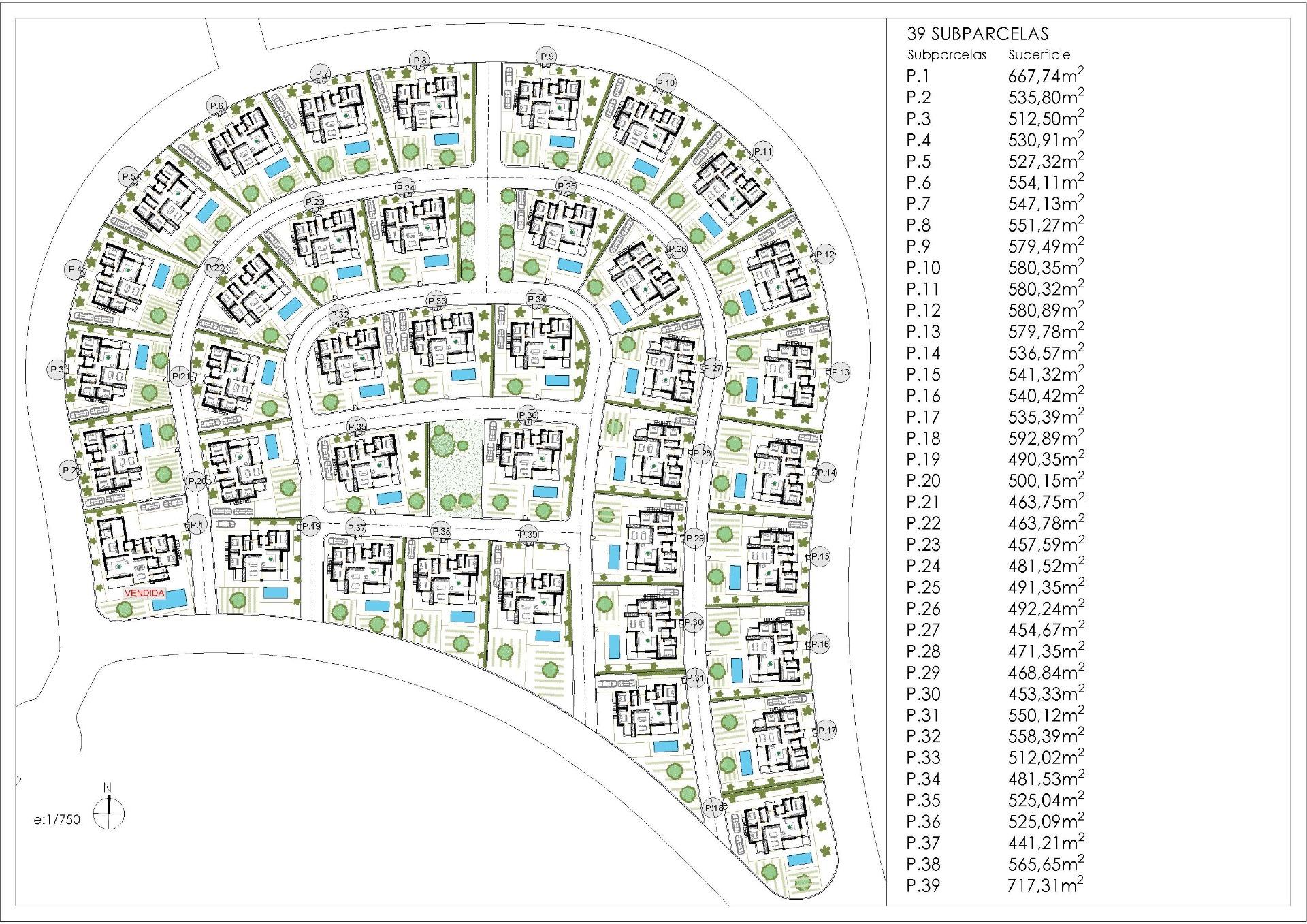 Villas met 3 slaapkamers op één verdieping met solariumDe woonwijk bestaat uit 39 villa’s op percelen vanaf 436 m2. Alle woningen hebben 3 slaapkamers en 2 complete badkamers op één verdieping, plus een terras met privézwembad en een privédakterras met uitzicht op de golfbaan.