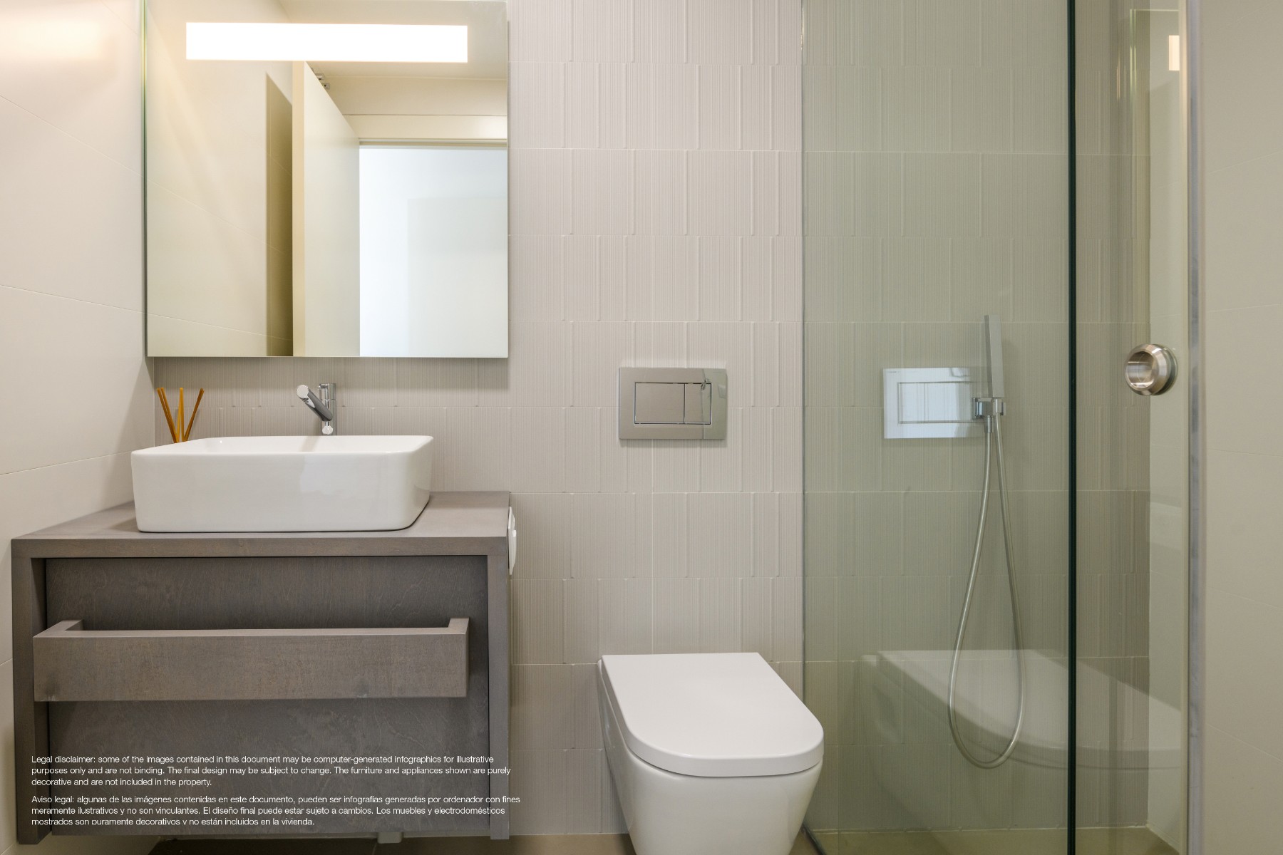 Op de eerste verdieping vindt u nog twee slaapkamers met inbouwkasten en twee badkamers met toegang tot het terras, waarvan één en-suite met een van de slaapkamers. De villa wordt opgeleverd met geïnstalleerde A/C via kanalen en Air Zone-systeem, vloerverwarming in badkamers, witgoed, LED-verlichtingspakket, volledige KNX-automatisering en een voorgeïnstalleerd verwarmingssysteem voor het zwembad. Door de grote raampartijen is deze woning geïntegreerd in de natuur