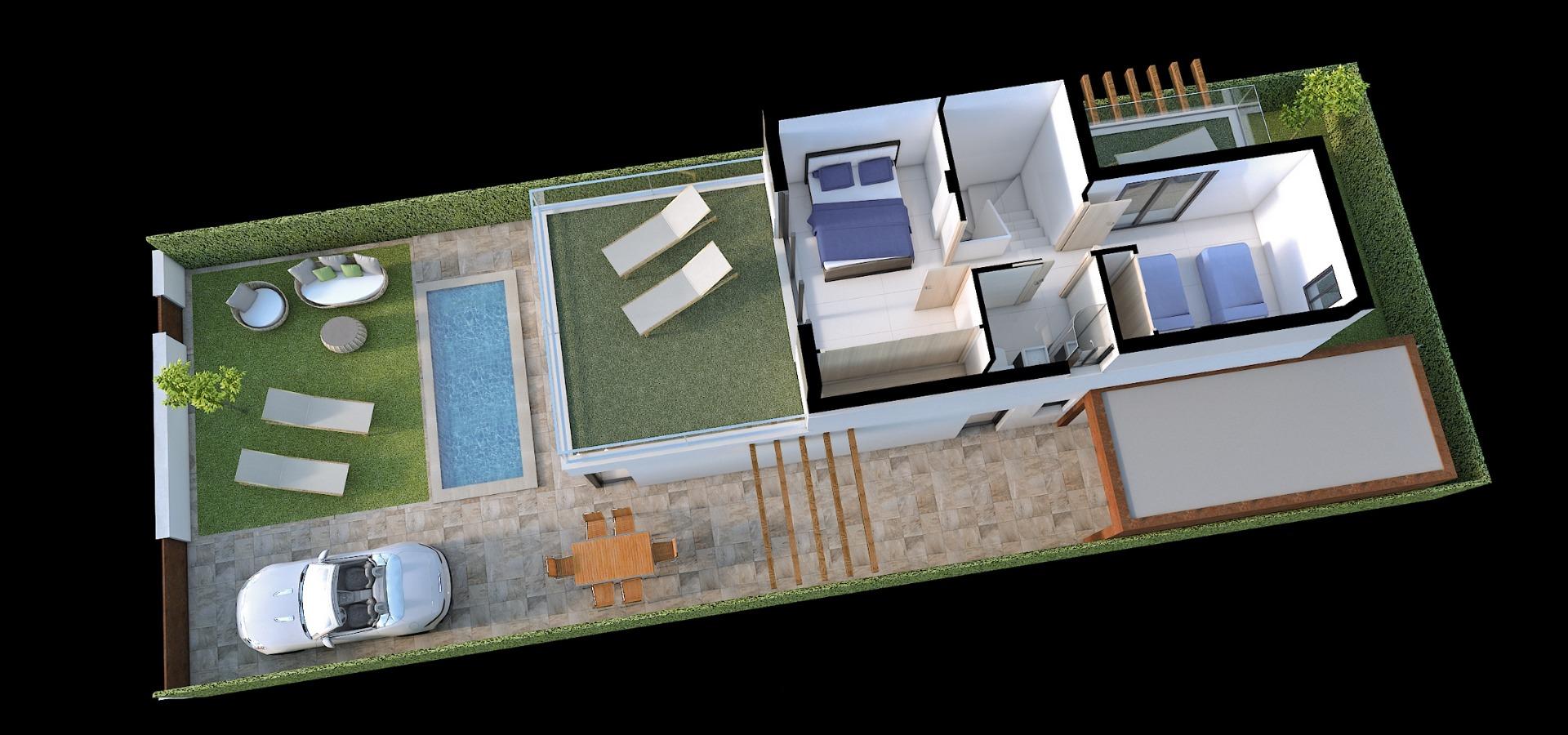 Prachtige villa’s hebben 3 slaapkamers en 2 badkamers, open keuken met de zithoek, inbouwkasten, privétuin met het zwembad, garage.