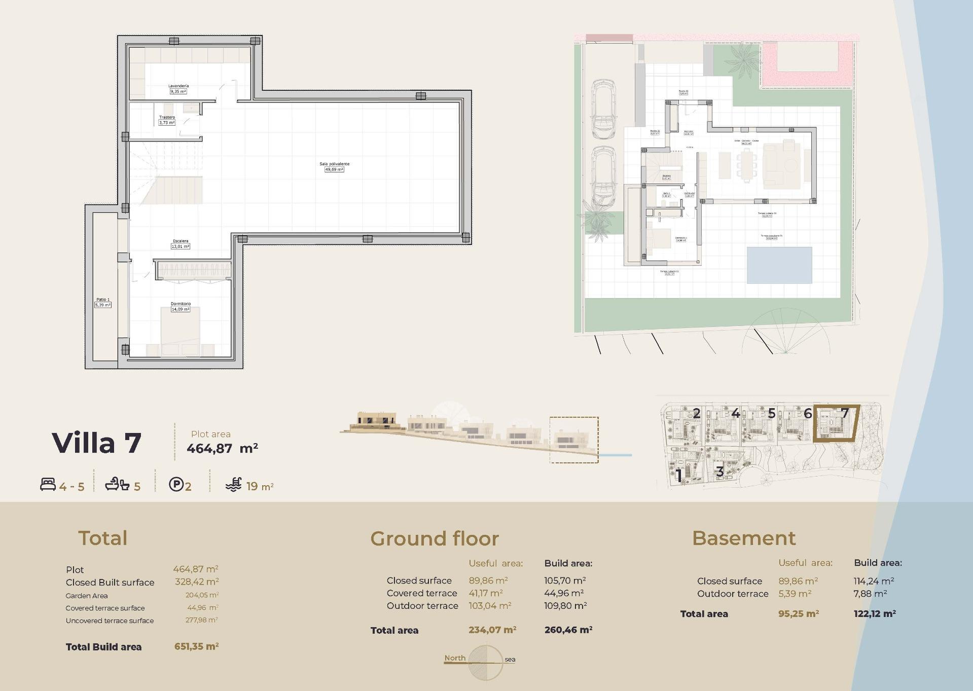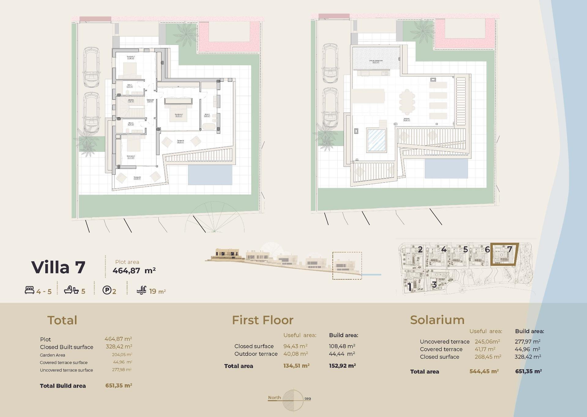 De villa’s zijn verdeeld over drie verdiepingen plus een solarium. Elke woning beschikt over een grote kelder met natuurlijk licht en ventilatie, die naar eigen wens kan worden aangepast, bijvoorbeeld als fitnessruimte, bioscoopzaal, extra slaapkamers of entertainmentruimte. Op de begane grond en de eerste verdieping bevinden zich de belangrijkste woonruimtes en verschillende terrassen, terwijl het ruime solarium op het dak bewoners laat genieten van een panoramisch uitzicht. Vier van de zeven villa’s bieden vanaf het solarium een spectaculair uitzicht op zee.