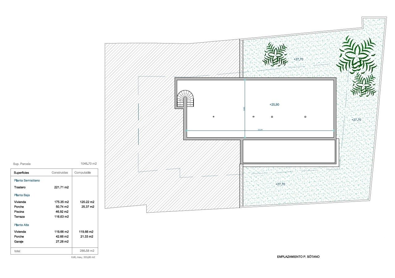 EXTRAS: Technal timmerwerk met veiligheidsglas, volledige keuken met Siemens apparatuur, volledige badkamers en kranen van het merk Roca, LED verlichting, aerothermisch systeem voor warm water en vloerverwarming, gekanaliseerde airconditioning (warm en koud) door het hele huis, zonnepanelen, inbouwkasten, elektrische rolluiken, interieur alarm, pre-installatie van exterieur alarm en beveiligingscamera’s. Rechthoekig zwembad met overloopsysteem van 12×4,5 meter, barbecueplaats van 22m2, wasruimte, afgewerkte tuin. Automatische toegangsdeuren. Energie classificatie A. Zuidelijke oriëntatie.