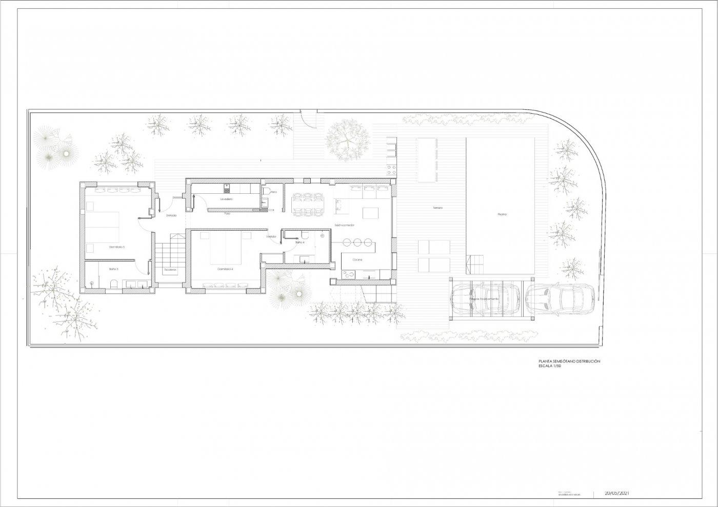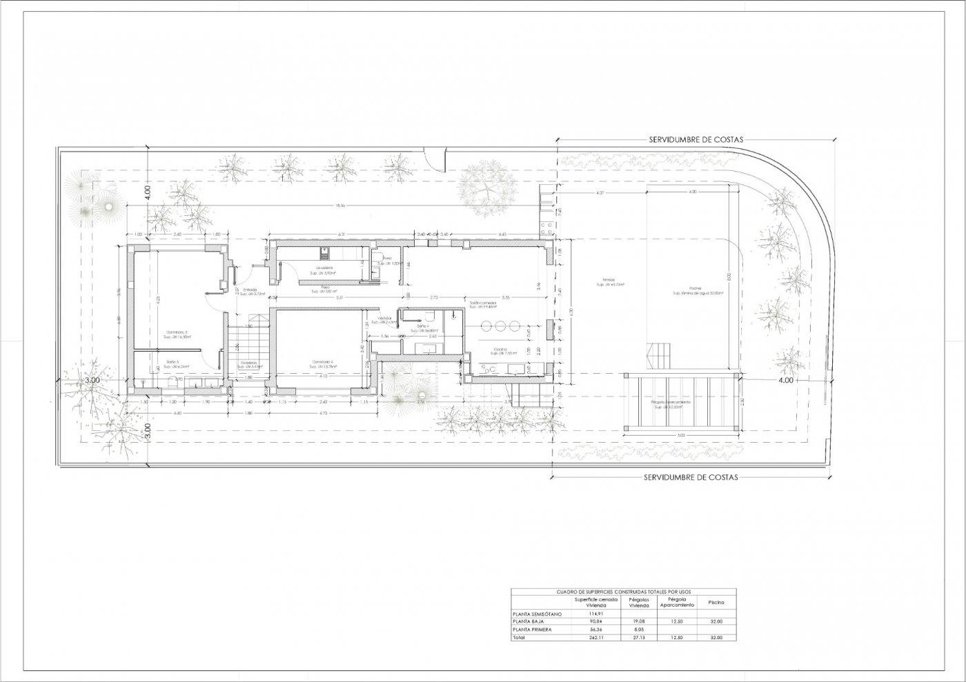 Te koop: Villa in aanbouw in Oliva, gelegen aan het strand van Rabdells. Het perceel heeft een oppervlakte van 462 m² en het pand is verdeeld over een souterrain, de begane grond en de eerste verdieping. Het project omvat in totaal zes slaapkamers, verschillende en-suite badkamers, woon-eetruimtes, keukens en meerdere terrassen.