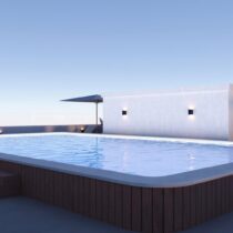 Op het dak wacht een indrukwekkende recreatieruimte van 350 m2. Deze ruimte omvat een zwembad van 70 m2 met een apart kinderbad, pergola’s, ligstoelen en schaduwrijke plekken, waar bewoners kunnen ontspannen terwijl ze genieten van een panoramisch uitzicht. Het dak is gemakkelijk bereikbaar met een van de drie liften en is voorzien van sanitaire voorzieningen voor extra comfort.