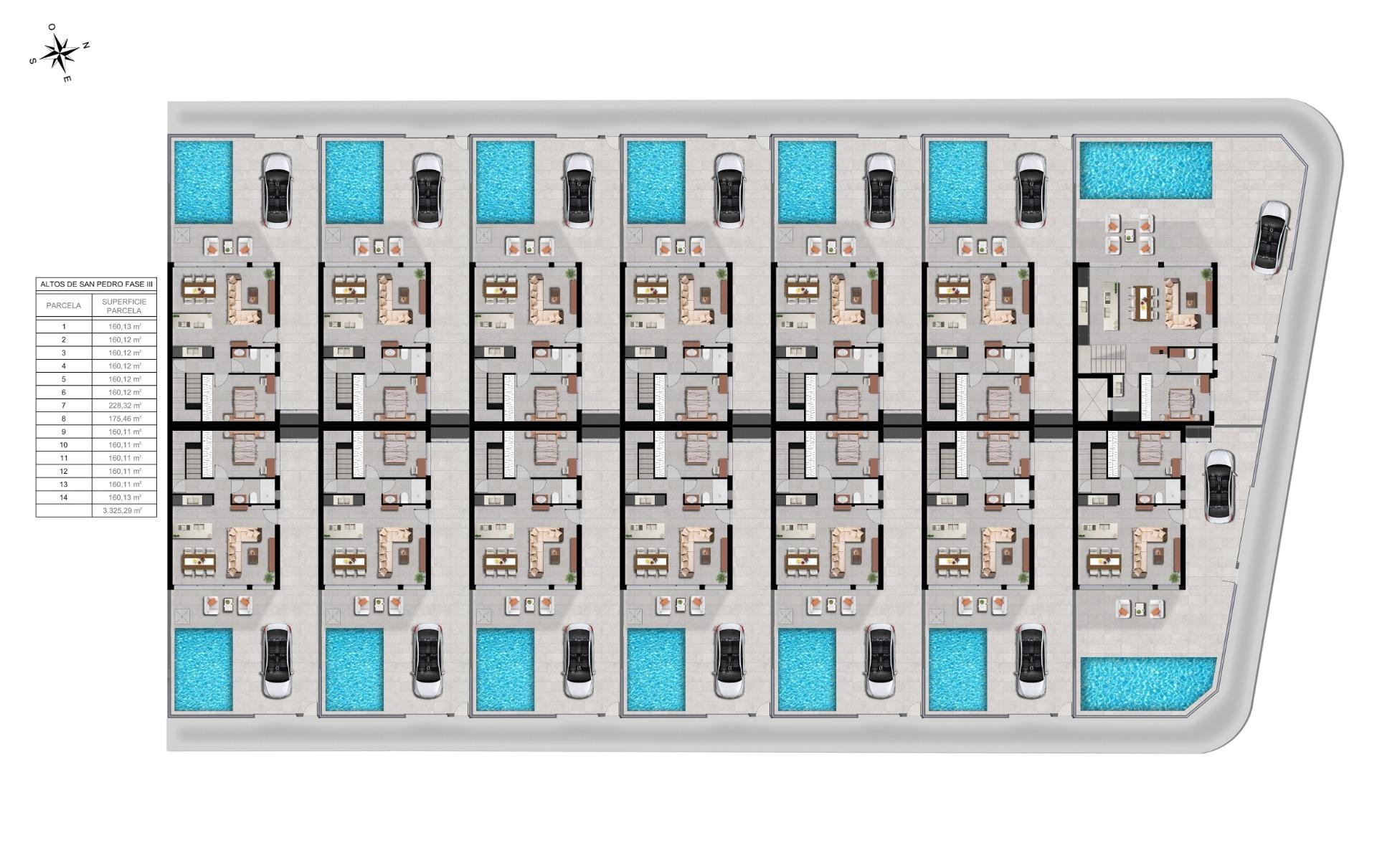 Ontdek de derde fase van dit exclusieve woonproject in San Pedro del Pinatar, waar moderne architectuur samengaat met comfort en functionaliteit. Deze 14 halfvrijstaande villa’s zijn ontworpen in een minimalistische stijl en afgewerkt met hoogwaardige materialen, waardoor ze een elegante en verfijnde woonervaring bieden aan de Costa Calida. Elke villa beschikt over 3-4 ruime slaapkamers, 3 badkamers, een privézwembad, terrassen en een privétuin, waardoor de perfecte omgeving wordt gecreëerd voor privacy, ontspanning en mediterraan buitenleven.